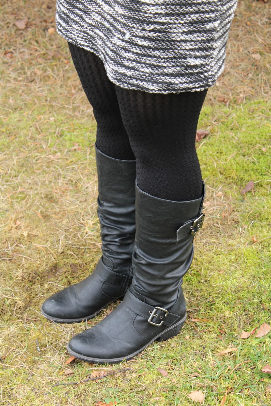 schöner look 🙂 ich bin im moment ganz angetan von strukturierten strumpfhosen. dazu ein pulloverkleid – das ist wirklich einer meiner liebsten looks momentan 🙂